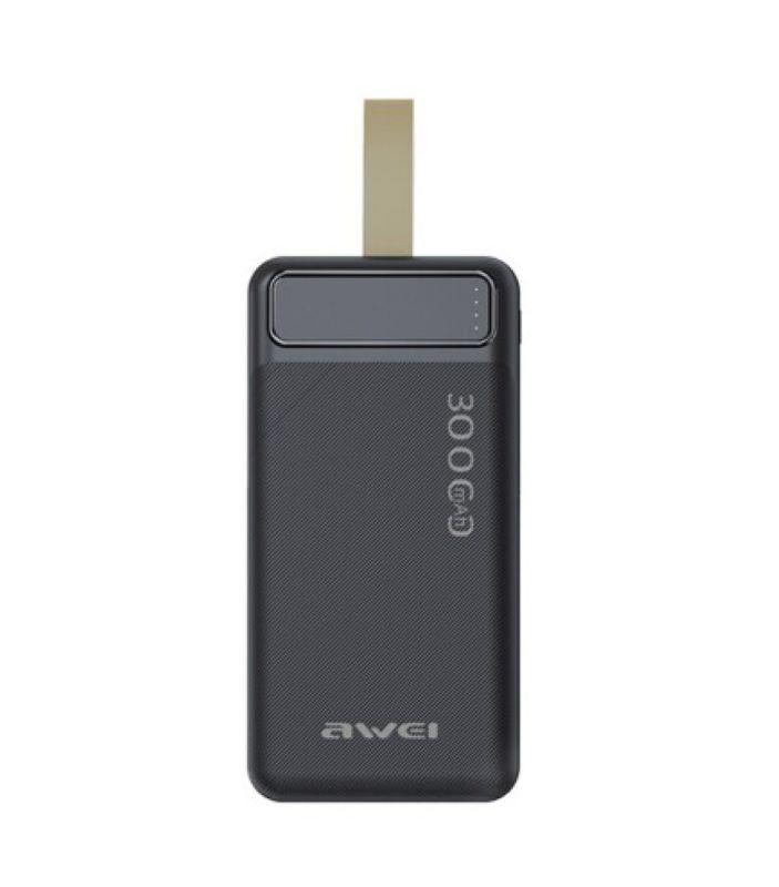 Потужний повербанк з індикатор заряду 30000 мАh, AWEI P7K (Black) Портативне заряджання PowerBank