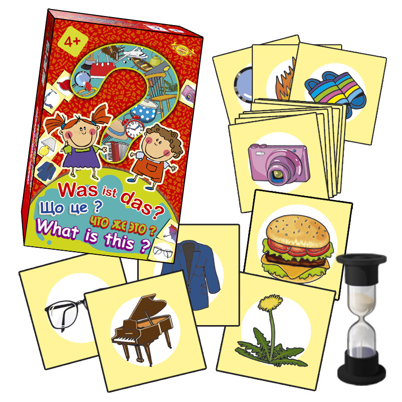 З 36 карток, викладених на столі, що веде подумки вибирає одну. Інші гравці мають вгадати її, ставлячи запитання, на які ведучий відповідає або «Так», або «Ні». Час, відведений на вгадкування, змінюється пісочним годинником. Хто ж виявиться найбільш кмітливим і уважним і збере найбільшу кількість карток?! ЗВИЛЕНО І АЗАРТНО! РОЗУМНІ РІВНІ СКЛАДНОСТІ! ДЛЯ ВСІХ ПОВІТРІВ! Комплектація: картки ігрові — 70 шт.; пісочний годинник — 1 шт.; правила гри на рус. і укр. мовами. Розмір коробки: 215х140х45 мм